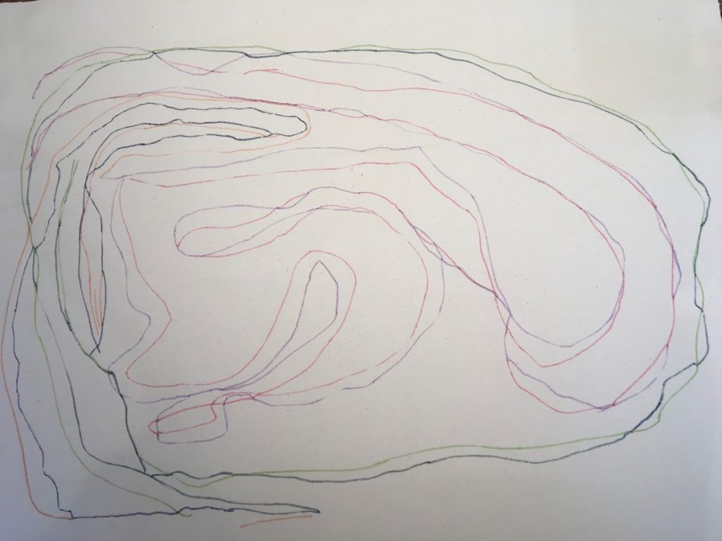 As a start, I began by tracing the drawings using the same felt-tips as we used in the original drawings. Given that these stitched works will, in some respects, be about memory, the fact these tracings are not entirely accurate, alludes nicely to the idea of memory itself not being an entirely accurate draughtsman.