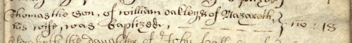 Nazareth was the wife of my 8th great-uncle William Oakley (born in St. Thomas’ parish, Oxford in 1673), and as things stand, that is all I know. But the more I’ve thought about her and who she was, the more I’ve considered how long she’s been forgotten, completely lost among the brier of ancient words that make up entries in the register. It’s strange to think that that is all that remains of her life; a fragment – a name scratched in ink on the pages of a book.