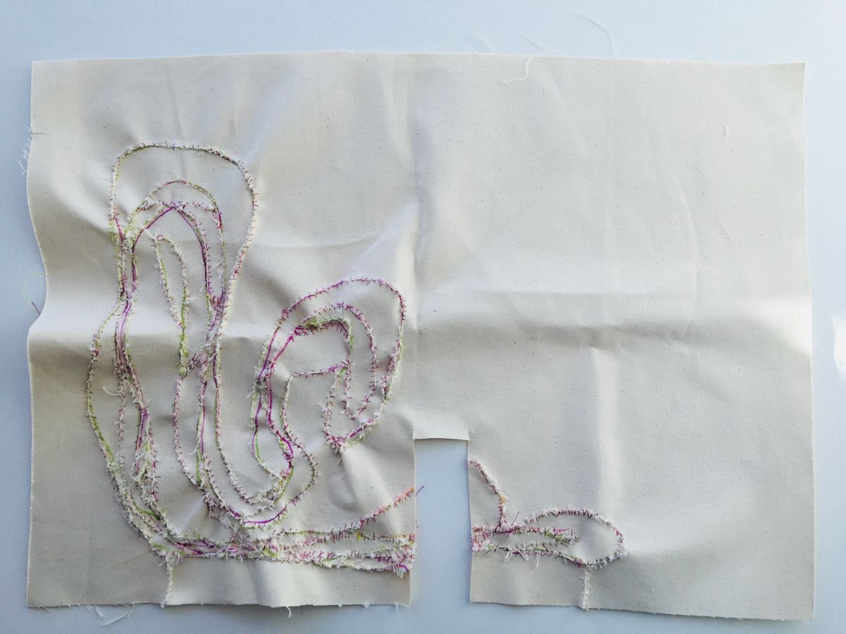 As a start, I began by tracing the drawings using the same felt-tips as we used in the original drawings. Given that these stitched works will, in some respects, be about memory, the fact these tracings are not entirely accurate, alludes nicely to the idea of memory itself not being an entirely accurate draughtsman.