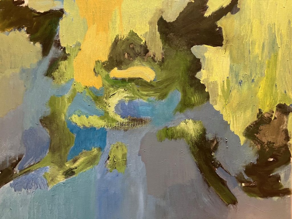 I like it when I make mistakes, or, as in the case of this painting, it wasn’t going the way I thought it would. I’d stuck some inked leaves on the canvas as per a recent painting with the aim of introducing some colour, but having done so, the canvas looked a mess and wasn’t doing what I wanted it to do. So, I took my palette knife and scraped it across the surface of the canvas, removing all the leaves and some of the pain and what was left I really liked.
