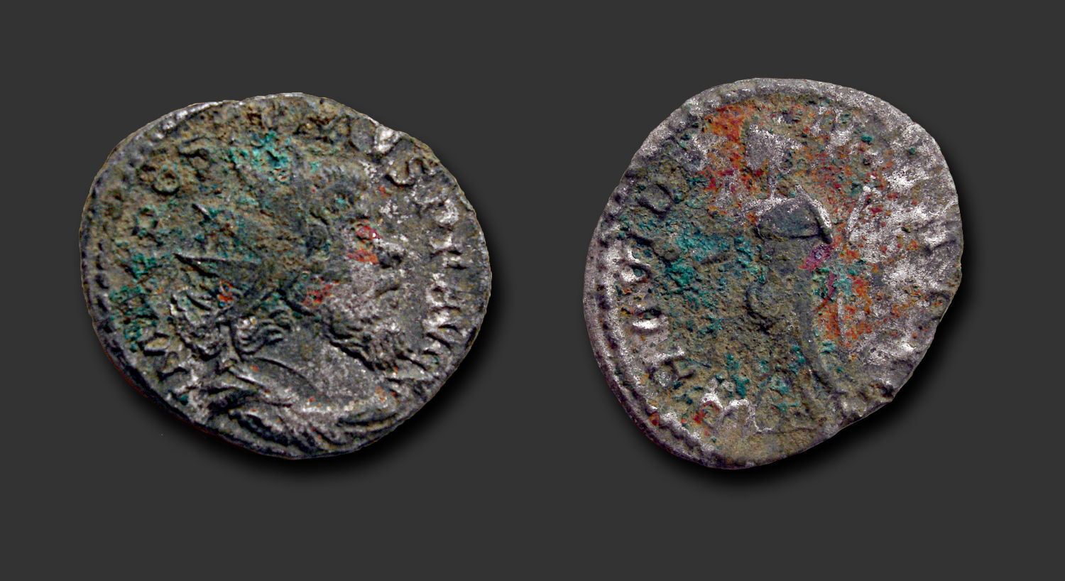 Further to my entry on the archaeological dig in Iffley, Oxford, I have carried out some extra work on the Roman coin we discovered whilst excavating the test-pit. The coin in question, dating from the reign of Emperor Postumus (260-269 AD) can be seen below.
