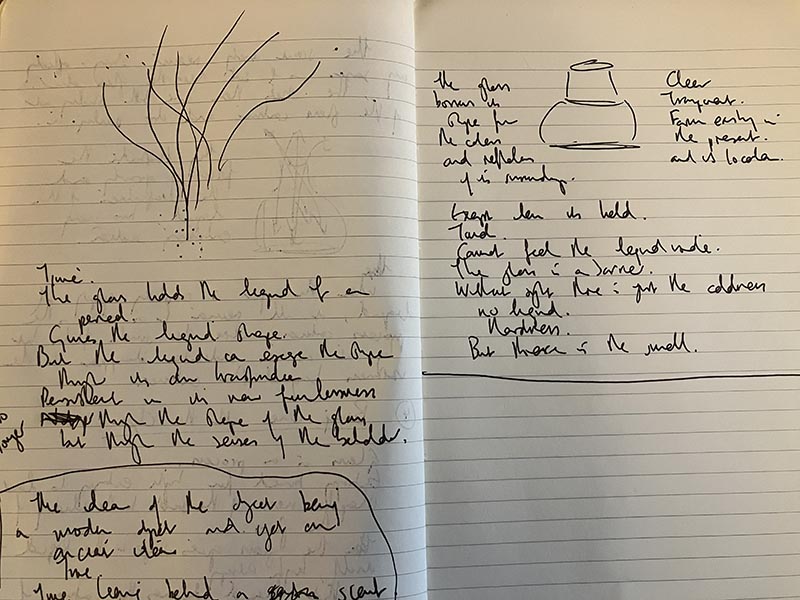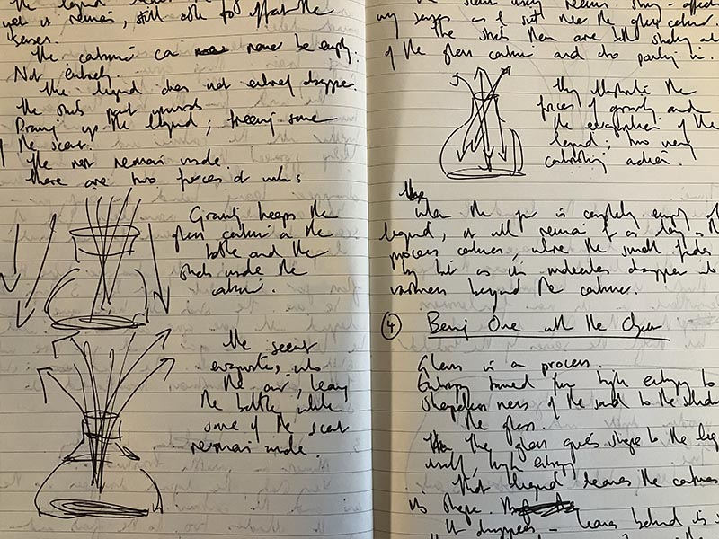 The sticks will disappear before the glass jar and what had been 3 things will be one. The sticks will have gone; the liquid will have gone and all that will be left is the jar – and yet there will still be the scent. The jar is still full – and yet there will still be the scent. The jar is still full; an emptiness transformed into something else.