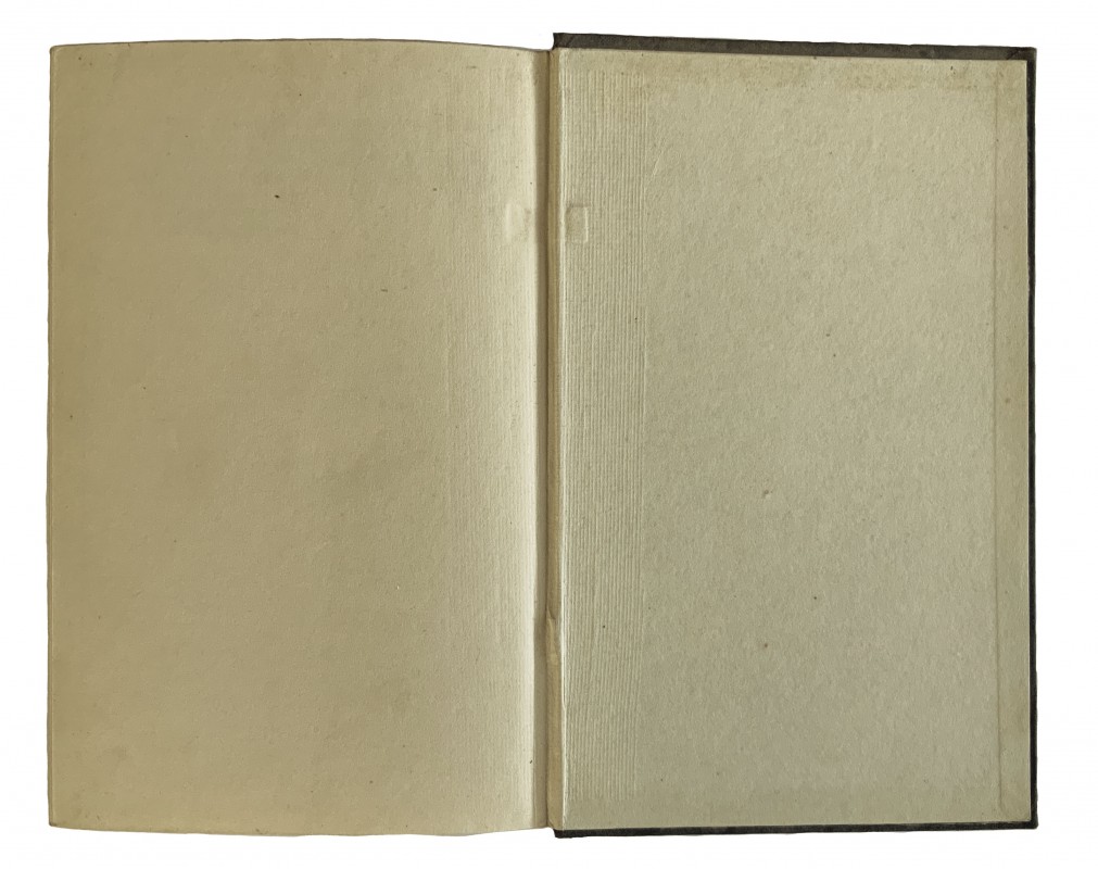 The object is a book with around 300 pages. It’s hardback, grey with a fair amount of wear and tear; mottled with patches of lighter grey. The spine has the title and the name of the author and publisher. The front and back covers are both blank with the same discolouration.