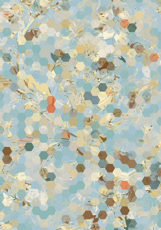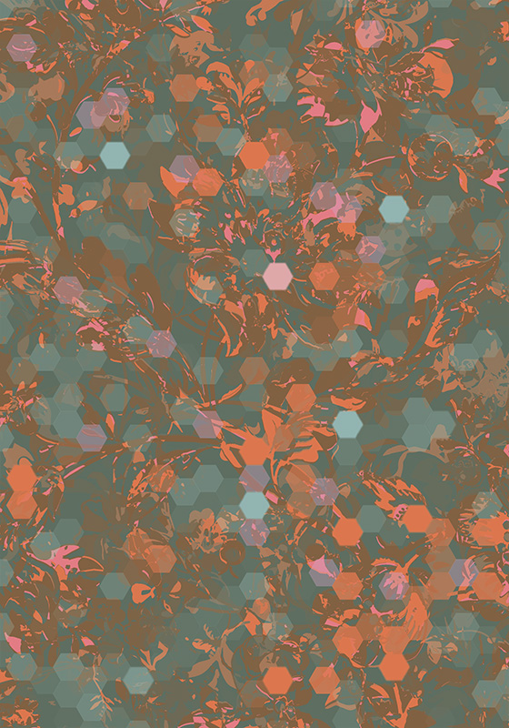 But while it did what I wanted, it looked too digital; too much of ‘this time’. So I decided to make the pixels into hexagons, alluding to the practice of mosaic patchwork (18th century term) and later English Paper Piecing.