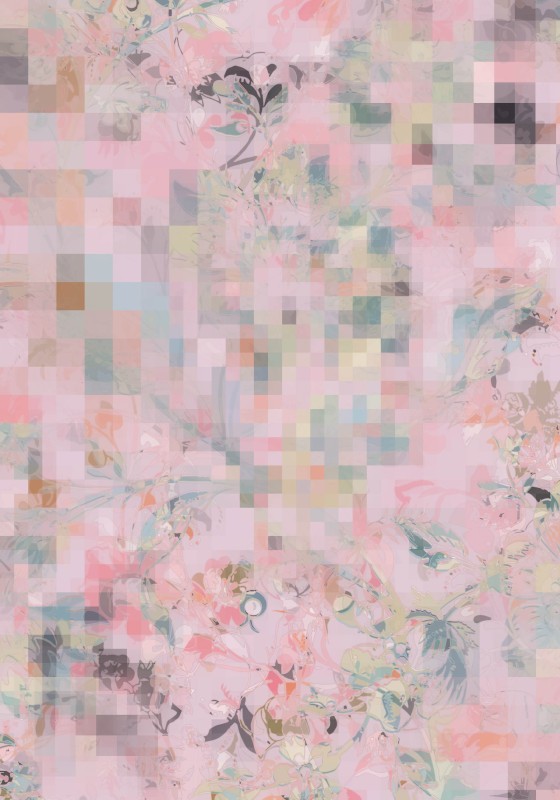 The first thing I did was pixelate the image with some of the original pattern remaining visible.