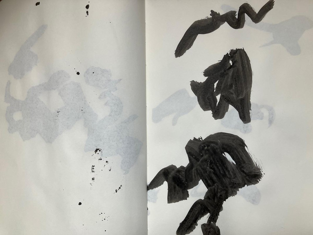 On Saturday, whilst at Shotover with the kids, I took some time – whilst they were climbing trees – to paint some of the shadows cast by the trees. I started working with shadows like these back in 2017 and have recently started exploring this idea again. Below are some examples from my sketchbook made on Saturday.