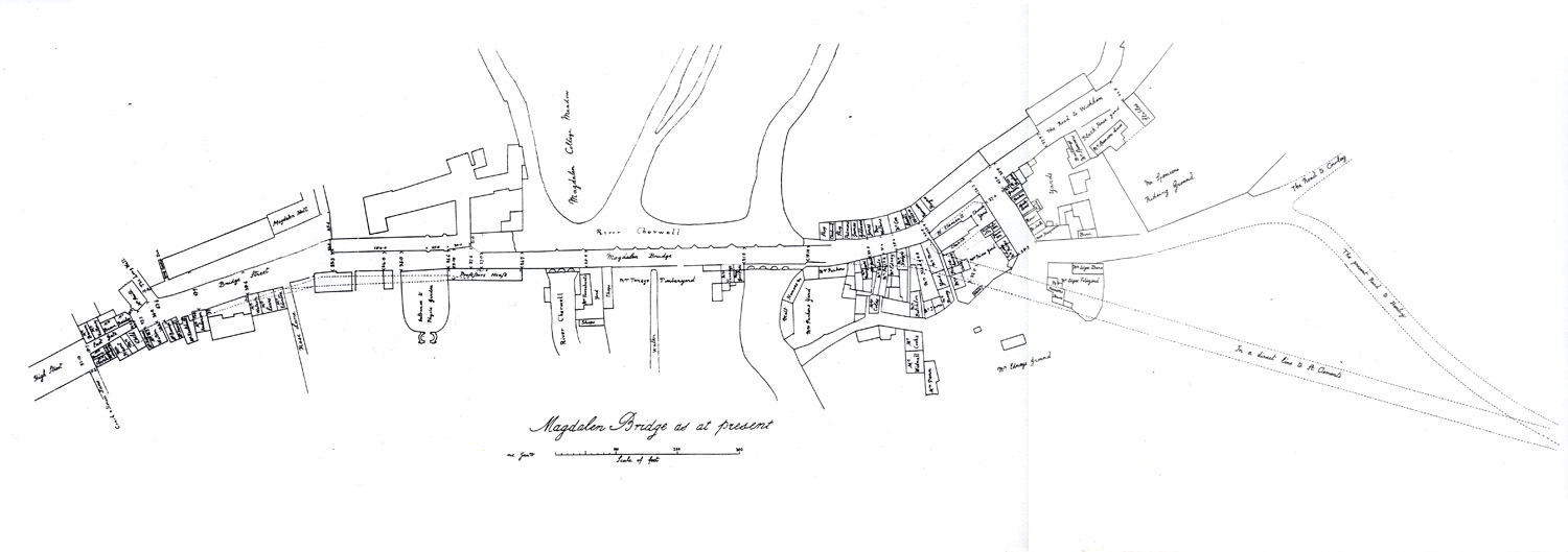 Magadalen Bridge is on the right hand side of the map, a detail of which can be found below.