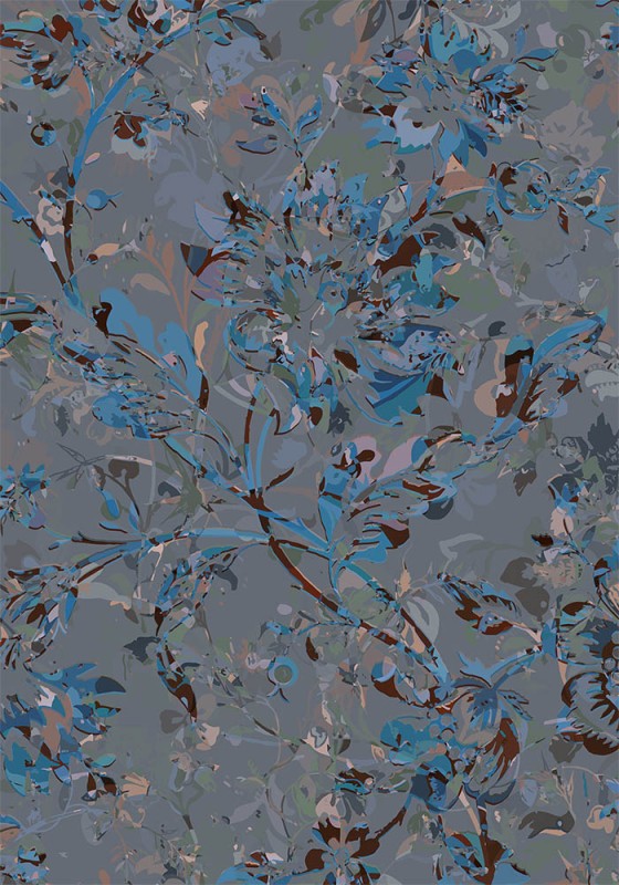 In this image we can see the traces of a coherent pattern or patterns; fragmentary ghosts of something that was once whole. We see a kaleidoscope of gestures and traces, which, every now and then cohere to form an image; a flower head, a leaf or a stalk. Our eye might trace the rhymes and search for the pattern, before losing the thread and finding only dissonance once again.