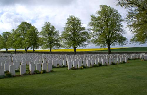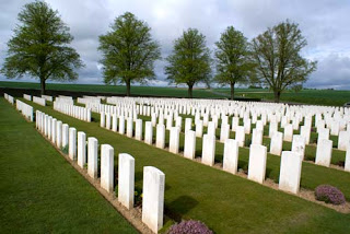 Death is at its most visible in the cemeteries and monuments of the Somme. The landscape is covered with hundreds. Immaculate and maintained by the Commonwealth War Graves Commission, they are strangely beautiful places wherein one’s breath is always taken away by the row upon row of white headstones. It’s only here the scale of the slaughter becomes apparent. Some headstones have names, many – where names are unknown – have just the words A Solider of the Great War. Often the date is familiar, coinciding with the start of a phase in the battle, July 1st 1916 for example. But many men too vanished altogether and over 72,000 of these men are commemorated on the Thiepval memorial to the missing.