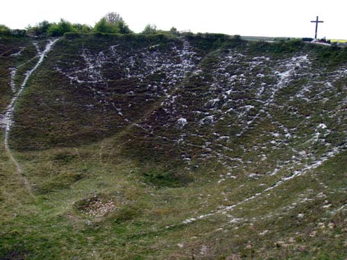 In La Boiselle, one can find the Lochnagar Crater, caused by a huge mine detonated at 7.28am on 1st July 1916. Containing 24 tons of explosives, it was at the time the largest ever man-made explosion.