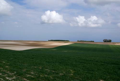 At the battle for Serre on that fateful day – 1st July 1916, hundreds of men lost their lives on the ground between the village and the memorial where we were standing. The weather on the day of our visit was mixed, but mostly dry (the battle took place on a beautiful summer’s day). There were patches of blue sky and the odd cloud. Looking ahead, I could see the lie of the land. I could see the distance, the village of Serre and behind me the trees of the copse. I could hear the birds and feel the ground beneath my feet. Imagine then, that as I walked, the things I saw were somehow recorded in the ground upon which I was walking: the position of the sun, the colour of the sky, the sound of the birds and the distance. As a record-head receives information and translates it onto tape, so metaphorically, my body was doing the same.